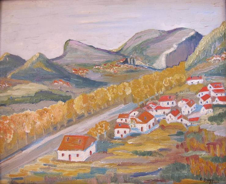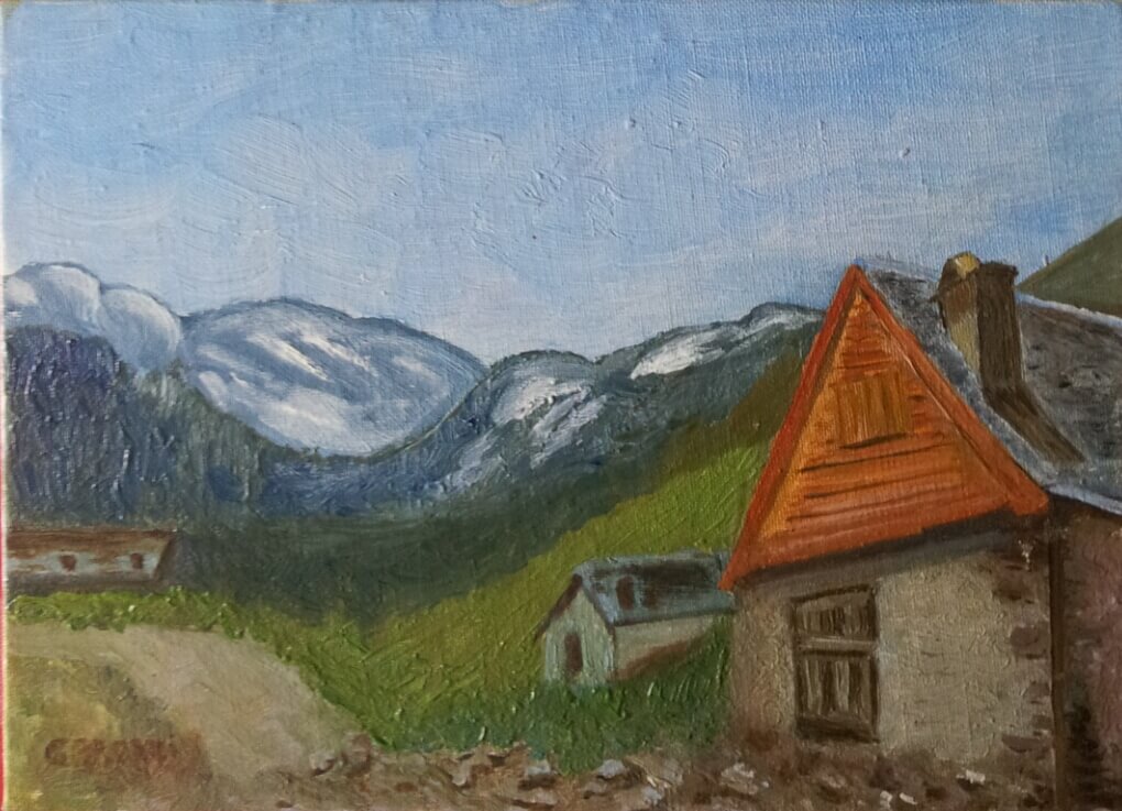 L'�glise de Aulus-les-Bains, Ari�ge - No�l 1984 - huile sur carton
