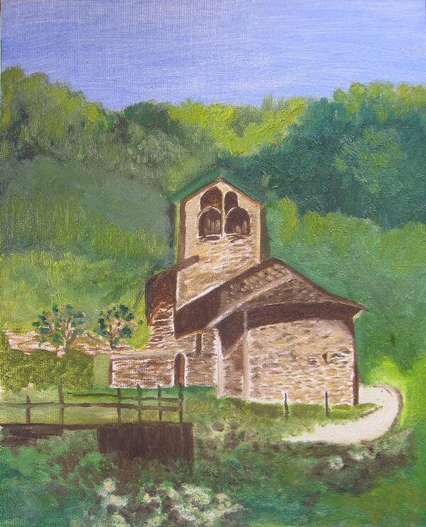 Une partie du monast�re de St Martin du Canigou - Ao�t 1982 - huile sur