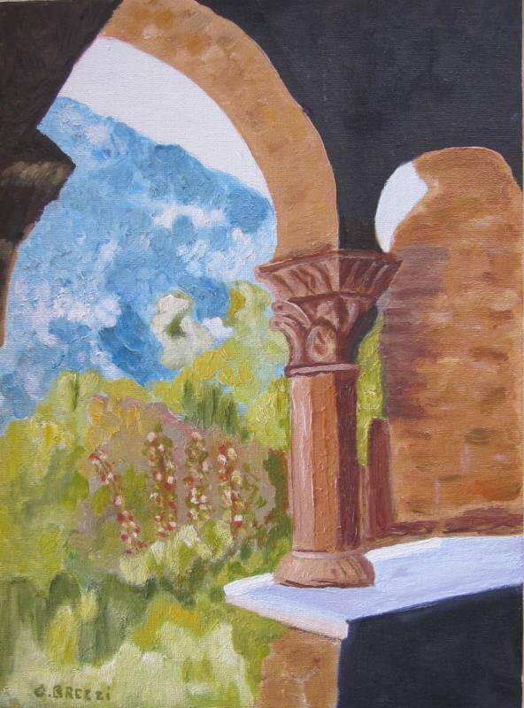Une partie du monast�re de St Martin du Canigou - Ao�t 1982 - huile sur
